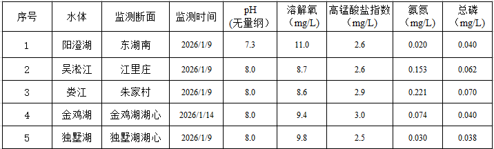 2026年1月蘇州工業(yè)園區(qū)地表水監(jiān)測(cè)結(jié)果