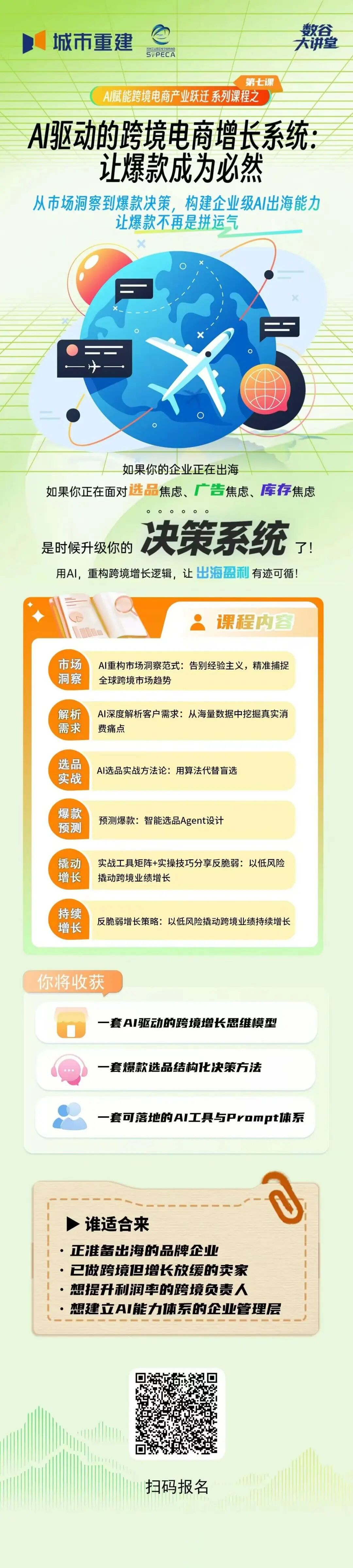 “數(shù)谷大講堂”品牌是基于南岸新地跨境電商人才培訓(xùn)體系的成熟經(jīng)驗(yàn),為滿足企業(yè)實(shí)際需求而打造。本周將開(kāi)講“AI賦能跨境電商產(chǎn)業(yè)躍遷”系列課程第七課,聚焦AI與跨境電商深度融合,助力企業(yè)構(gòu)建高效增長(zhǎng)體系,進(jìn)一步提升出海能力。