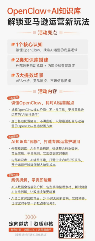 活動(dòng)將帶領(lǐng)從業(yè)者讀懂OpenClaw、找準(zhǔn)AI運(yùn)營(yíng)的底層邏輯,搭建外部數(shù)據(jù)自動(dòng)抓取與內(nèi)部經(jīng)驗(yàn)智能沉淀的兩類知識(shí)庫(kù),同時(shí)圍繞品牌分析、競(jìng)品監(jiān)控、市場(chǎng)信息抓捕等提效場(chǎng)景展開(kāi)探討,助力企業(yè)提升競(jìng)爭(zhēng)力,快一步搶占市場(chǎng)先機(jī)。