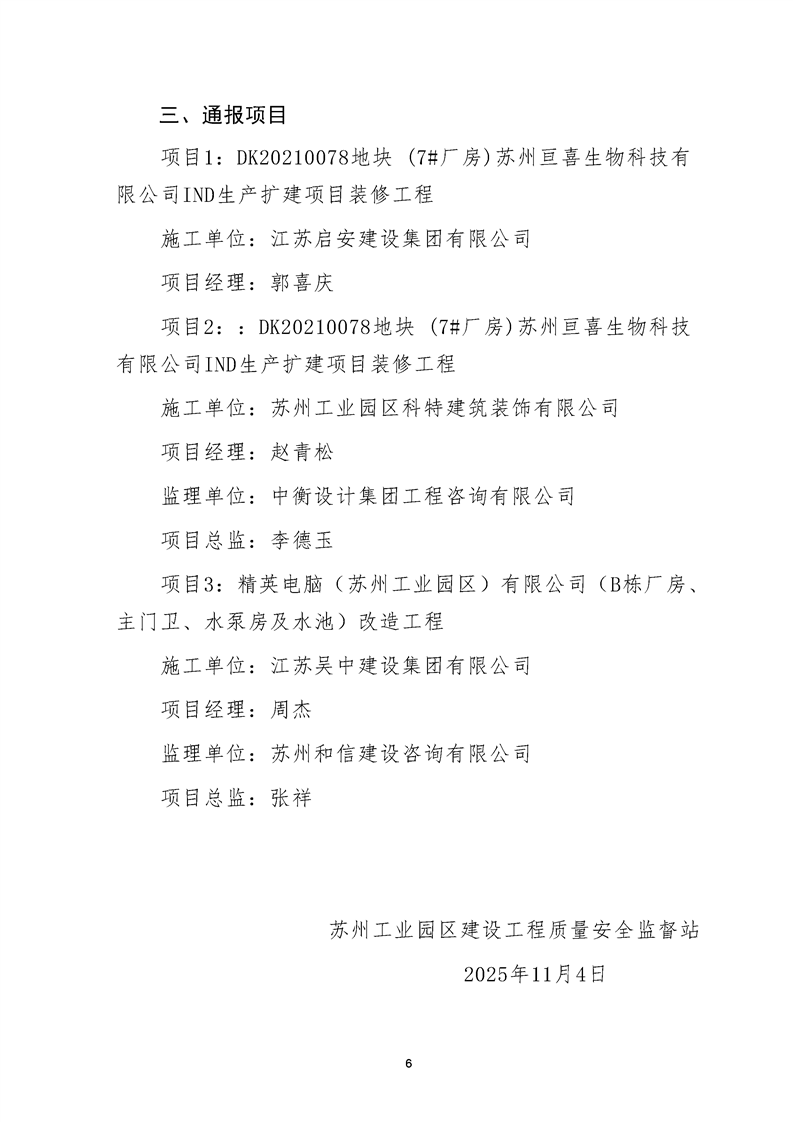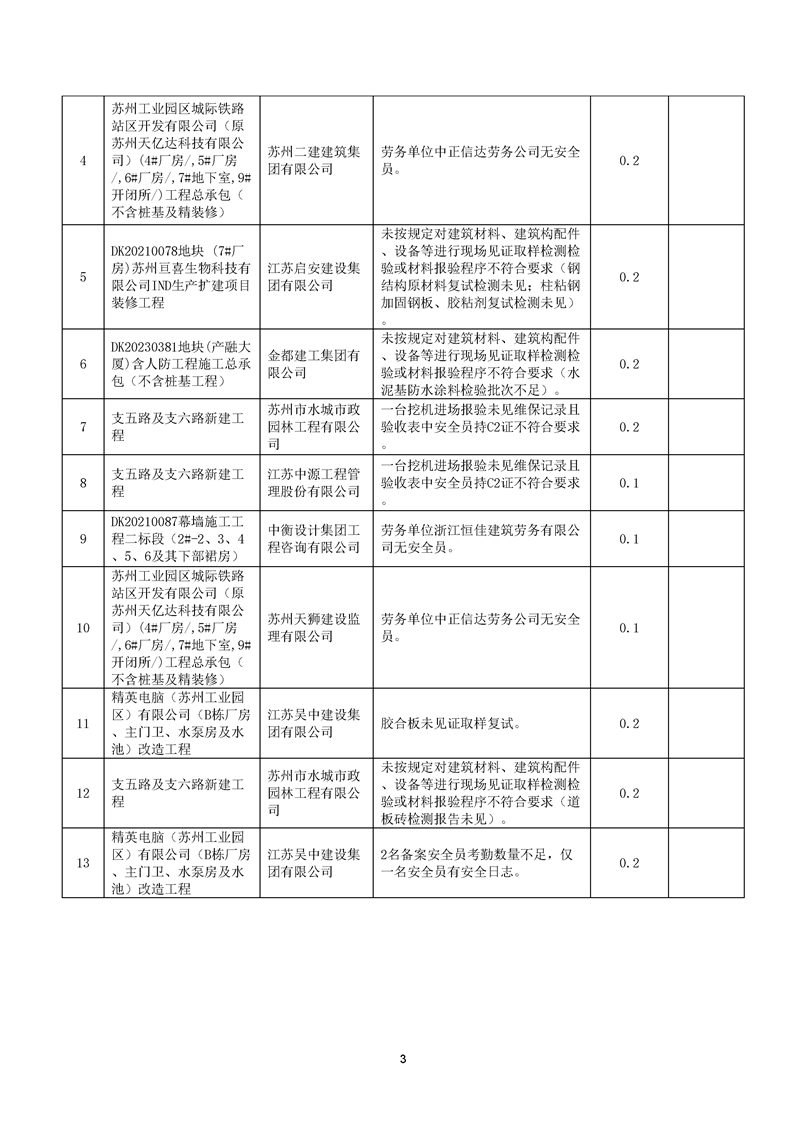園區質安站關于10月份建筑質量安全綜合檢查、揚塵防治不良信息的通報