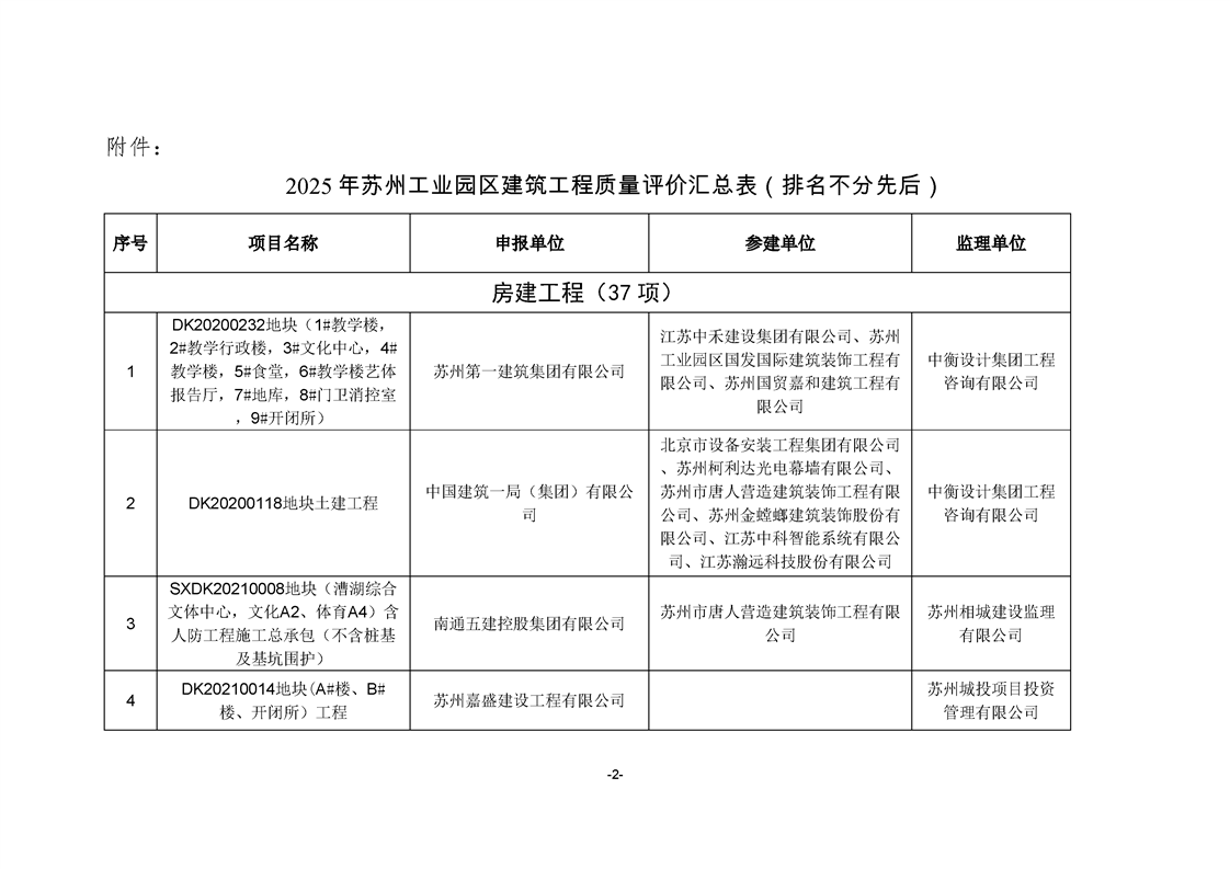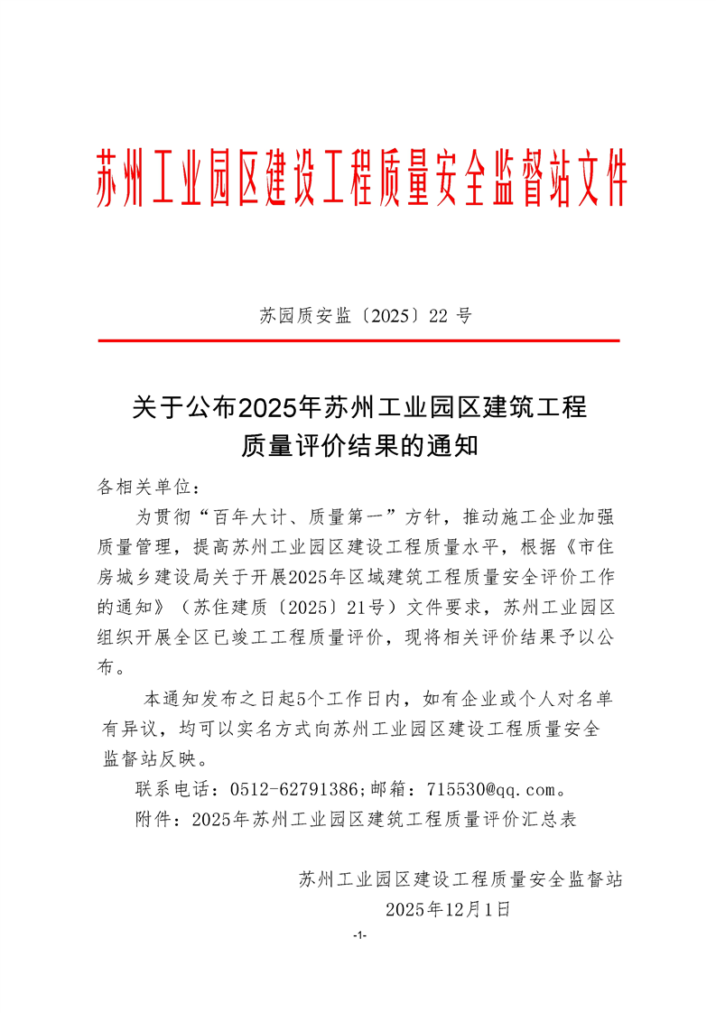 關(guān)于公布2025年蘇州工業(yè)園區(qū)建筑工程質(zhì)量評(píng)價(jià)結(jié)果的通知
