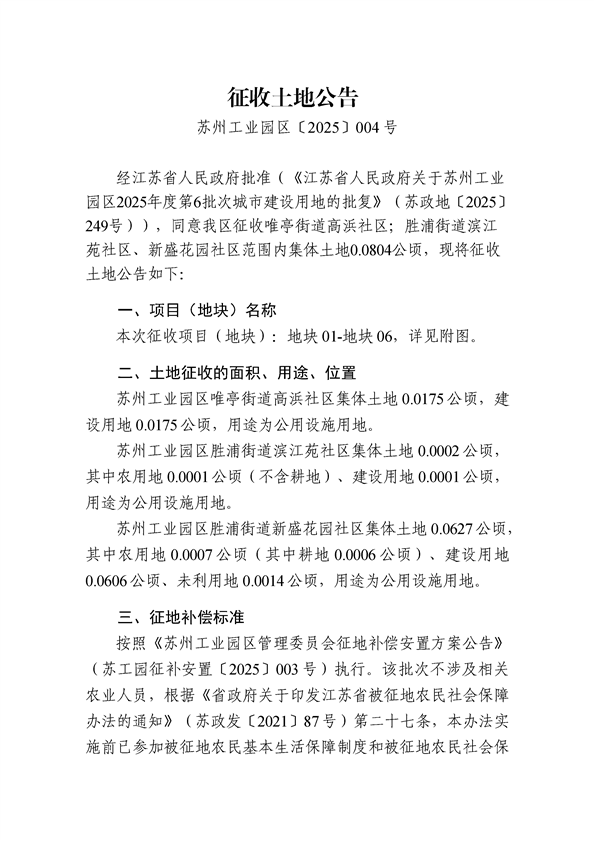 蘇州工業園區2025年度第6批次城市建設用地-征收公告