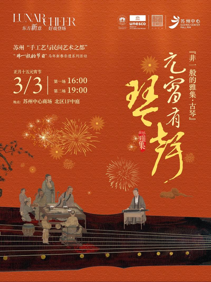 3月3日,蘇州中心商場北區一樓中庭將舉辦“非一般的雅集?古琴”專場。指尖輕撥,清音流轉,邀市民與游客共赴一場滌蕩心靈的聽覺雅集。現場將奏響《賽馬》《梅花三弄》《上春山》等經典曲目,共設兩場演出,分別于16:00、19:00開場。元宵佳節,不妨移步蘇州中心,聽一曲清音入耳,共賞雅韻。