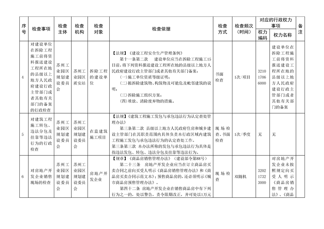 蘇州工業園區規劃建設委員會行政檢查計劃清單(2025年度)