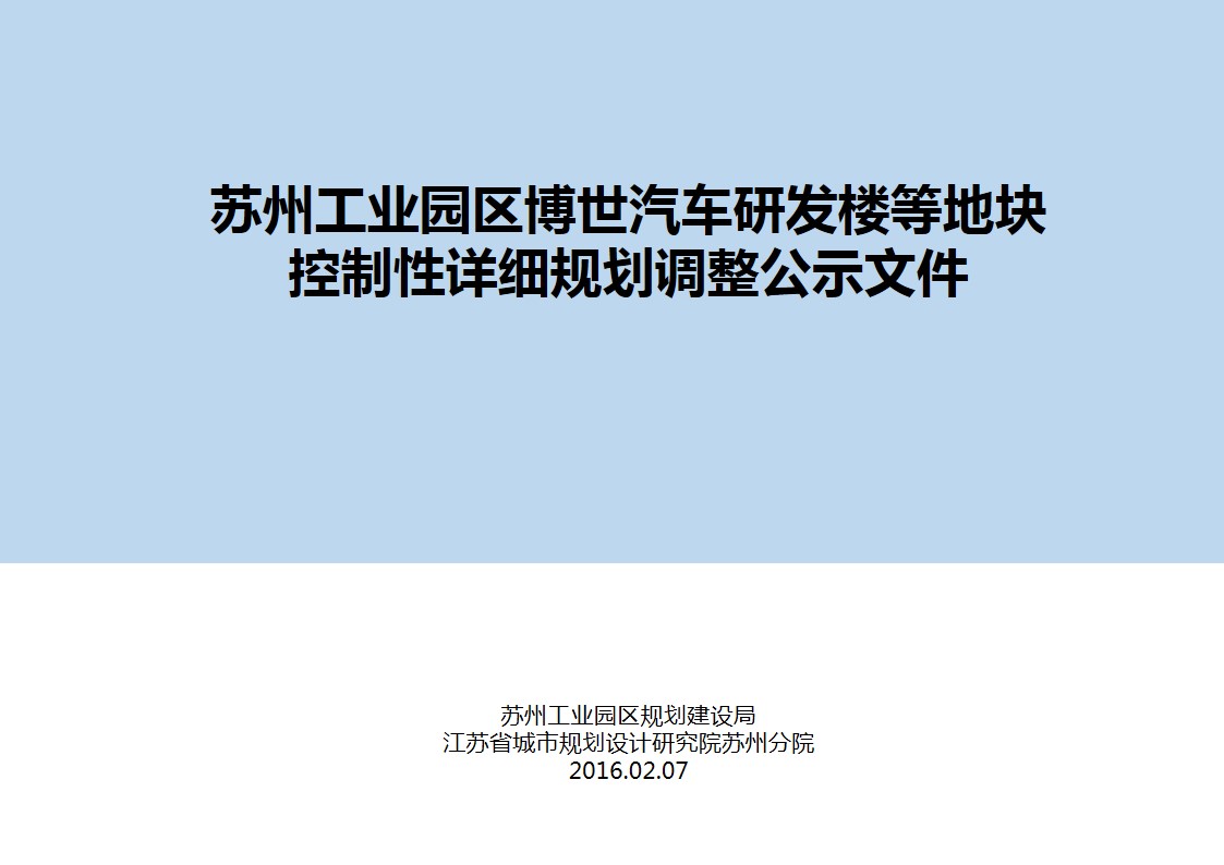 蘇州工業園區博世汽車研發樓等地塊控制性詳細規劃調整公示文件(一)