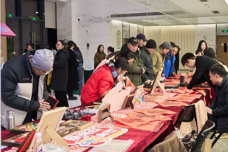 本発表會は、大衆(zhòng)蕓術(shù)の多様な表現(xiàn)に焦點(diǎn)を當(dāng)てるだけでなく、新春の伝統(tǒng)的風(fēng)習(xí)との交流イベントを取り入れ、「蕓術(shù)+民俗」という二重の體験を創(chuàng)出した。開演前には、會場で春聯(lián)(縁起の良い対句)や「福」の字を書いて贈呈する活動、無形文化遺産である伝統(tǒng)的風(fēng)習(xí)の體験イベントなども開催され、市民は筆墨や無形文化遺産の體験を通じて、早くも新春の雰囲気を感じ取っていた。