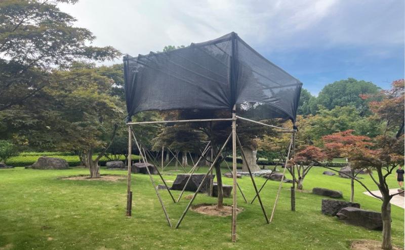 針對紅楓、造型樹等不耐高溫的特殊樹種,集團提前布局,采用遮陽網(wǎng)架等物理防護措施,有效降低了樹木表面的溫度,減少了陽光直射帶來的日灼傷害,保護了樹木的健康生長。