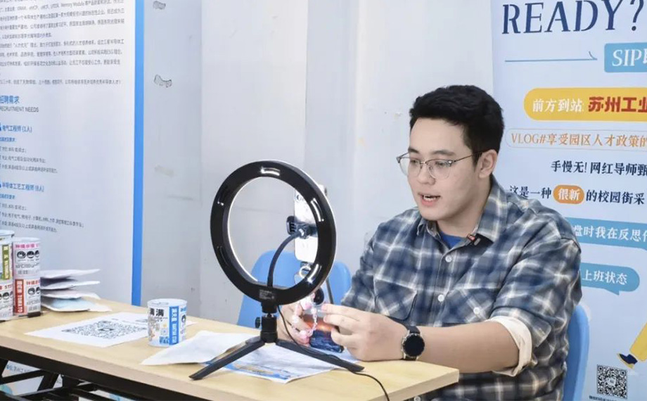 此次新建元圓才創(chuàng)新引才形式,聯(lián)動“SIP職通車”校園主播將帶崗直播間搬進高校。來自哈爾濱工業(yè)大學的遲重同學作為“SIP職通車”校園主播的一員,擔任起“引才推薦官”,創(chuàng)建交流群提前分享校招崗位信息及園區(qū)人才政策,并在活動現(xiàn)場同步開啟線上崗位分享,更是通過他在園區(qū)參訪的切身經歷,分享作為青年人才所感受到的園區(qū)魅力,全程干貨滿滿,互動熱烈。