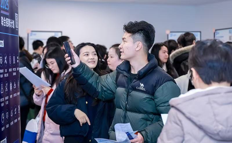 招聘會現場人頭攢動,熱鬧非凡,不少企業攤位前都排起了長隊。來自山東煙臺大學通信工程專業的應屆畢業生岳國震,拖著行李就直奔現場。他興奮地說:“我在社交媒體上看到招聘會信息,就想來碰碰運氣。我姐姐也在園區工作,一直跟我講這里充滿活力,市場潛力大,對青年人才的政策保障也特別給力,就業前景廣闊。”