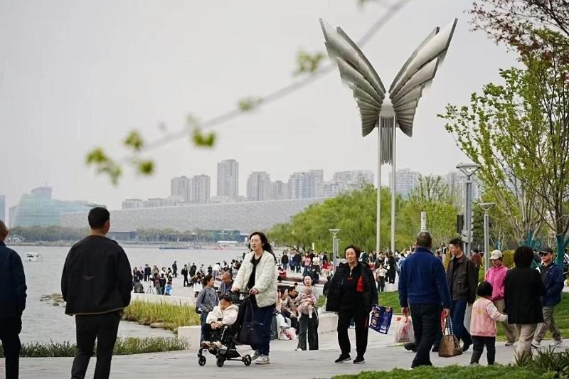 文明是城市的耀眼底色。清明小長假,蘇州城市街頭迎來市民游客交織的熱鬧景象。正是春和景明時,美麗的自然風景是城市給予市民游客的禮物;而漫步城市間,從景區到公共場所,市民游客的文明舉止、禮貌言行則是另一道靚麗風景,彰顯了游人對蘇州的熱愛,成為城市可觸可感的美好記憶。金雞湖右岸,絡繹不絕的人流彰顯出這一新晉“頂流”對市民游客的巨大吸引力。作為蘇州新的城市地標,“蘇州之眼”摩天輪在小長假期間迎來一波“大流量”,其以充滿科技感、現代感的體驗,讓游人感受蘇州的現代發展和浪漫情懷。傍晚時分,來自常州的吳女士一家正有序排隊,等待“登艙”。“前段時間‘蘇州之眼’在小紅書特別火,趁著假期趕緊來打卡,而且特意選擇了可以在摩天輪上看日落的時段。來之前還擔心人多擁擠,但現場大家排隊非常有序,工作人員也很周到熱情,體驗感蠻好的。”與“蘇州...