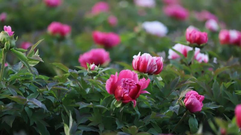 牡丹花朵雍容華貴,色彩艷麗,被譽為“花中之王”。金雞湖牡丹園的花朵盛開時,仿佛一幅富麗堂皇的畫卷,令人嘆為觀止。