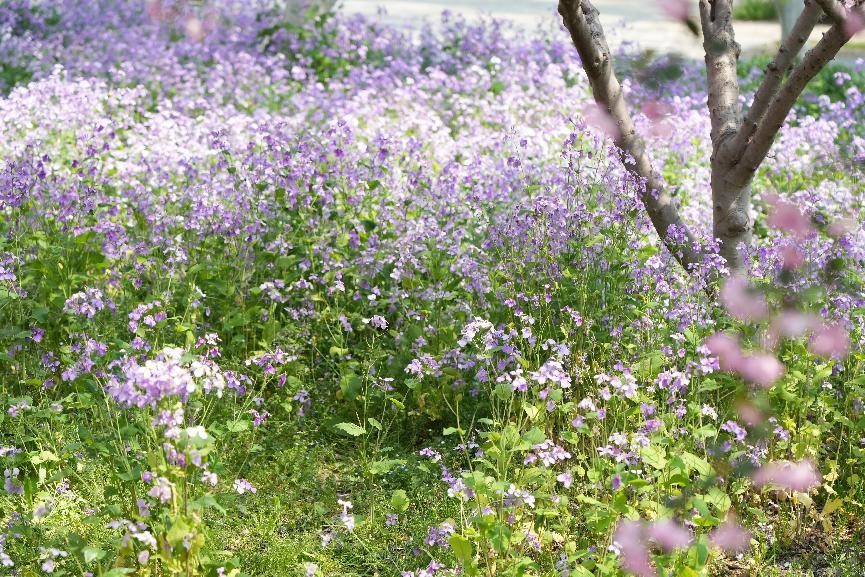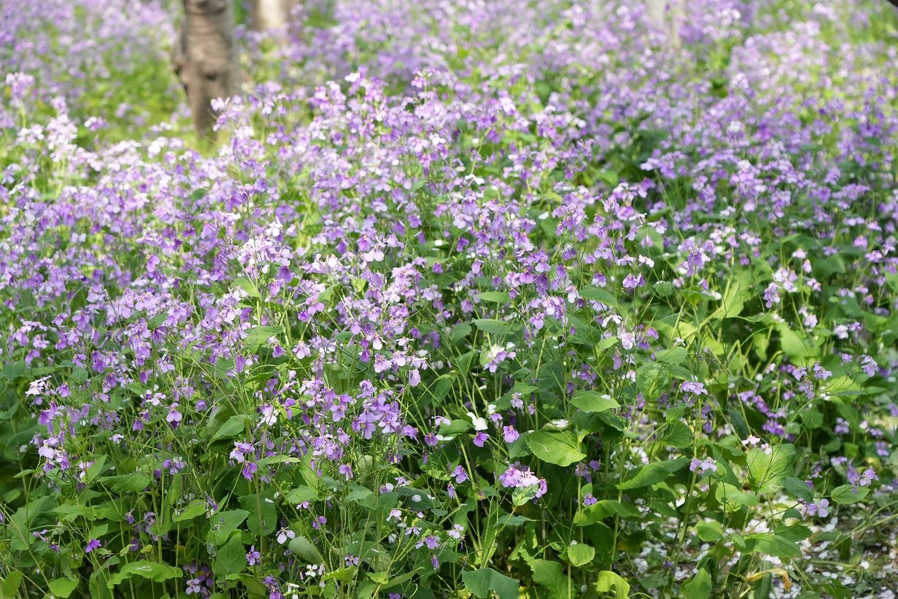 成片的二月蘭盛開時如同一片紫色的海洋,在春風中起伏蕩漾,充滿了神秘與浪漫的氣息。