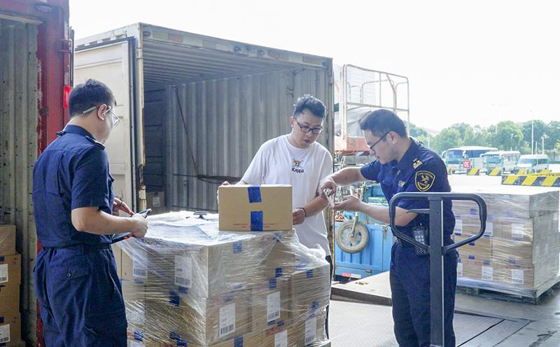 前置貨站配備獲得相關資質的航空安檢專業人員,采用機場專用設備,對接上海機場信息化系統,將上海機場的安檢和服務規范前置,也就是說貨物在前置貨站完成安檢,駁運至上海后不再實施安全檢查。采用轉關模式在園區完成海關查驗操作,通過電子關鎖完成驗封、拆封,同時加快推進實現自動驗放、核銷。引入上海化工院檢測有限公司等單位,在本地為企業出具磁檢、化工報告等鑒定材料,無需再至上海辦理。