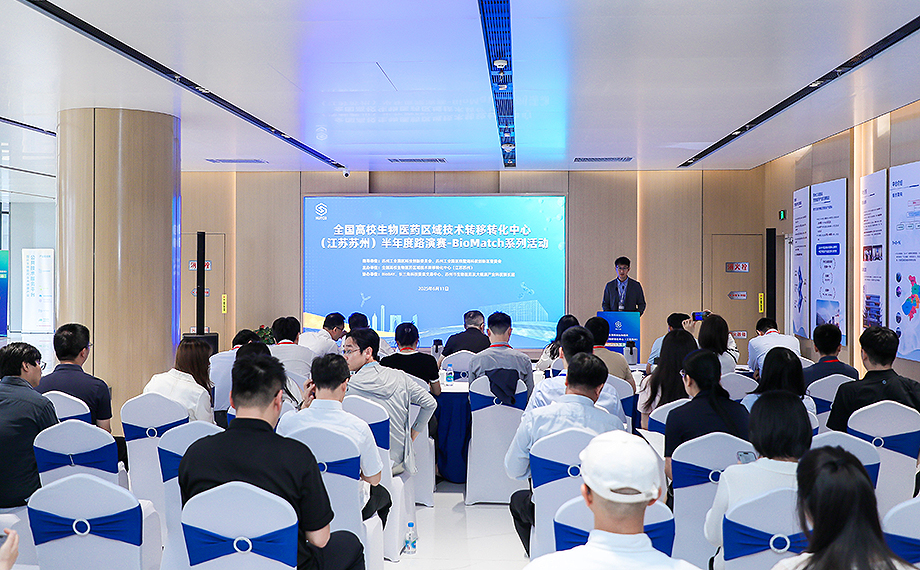 依托“全鏈條”服務平臺,更多高校生物醫藥科技成果將在蘇州工業園區加速轉化。6月11日,全國高校生物醫藥區域技術轉移轉化中心(江蘇蘇州)(以下簡稱“蘇州生物醫藥分中心”)BioMatch系列活動半年度路演賽專場在蘇州生物醫藥產業園成功舉辦。大賽面向全國高校征集優質生物醫藥方向技術轉移轉化項目,通過現場路演展示、專家點評打分等方式評選優秀成果,推動優質項目在園區落地發展,促進產學研深度融合。