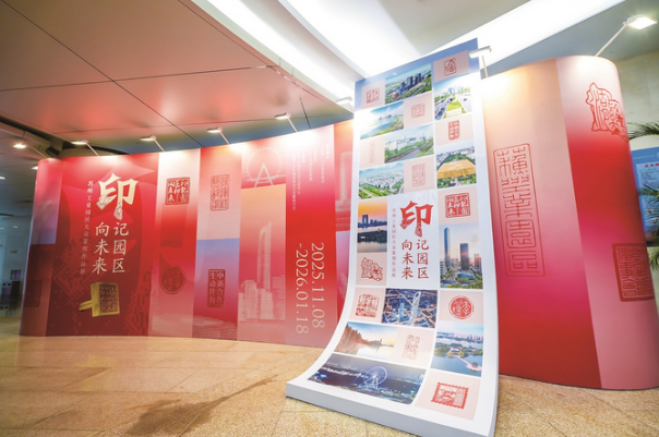 這一點從參展作品的名稱中就可窺見一斑:既有“園區(qū)經(jīng)驗”“九連冠”“蘇州造”等與園區(qū)密切相連的關(guān)鍵詞,又有“發(fā)揮試驗示范作用”“一站式服務(wù)”“走出去”等聲名在外的治理理念,還有海關(guān)大樓、中央公園、鄰里中心等園區(qū)人耳熟能詳?shù)慕ㄖ梢哉f,每一枚印章背后,都能講出一段園區(qū)故事。