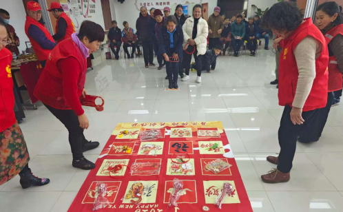 另一份來自街道就業(yè)公司養(yǎng)老服務(wù)中心的禮物,則在綜合為老服務(wù)南部中心被悄然打開。老式爆米花爐“嘭”的一聲脆響,瞬間喚醒了老人們沉睡的味蕾;非遺傳承人現(xiàn)場(chǎng)制作傳統(tǒng)小吃,香甜的氣息勾連起幾代人的往昔回憶。傳統(tǒng)手藝互動(dòng)區(qū)前,長(zhǎng)者們圍坐案前揮毫潑墨,提筆落筆間,橫豎撇捺蒼勁舒展,祝福在紅紙上蜿蜒;趣味游戲區(qū)內(nèi),大家組隊(duì)參與,手持套圈重拾童趣,歲月的褶皺漾起輕松與愜意的笑顏。最后的暖心文藝展演環(huán)節(jié),長(zhǎng)輩們齊唱耳熟能詳?shù)睦细?,用熟悉的旋?/span>奏響時(shí)代記憶,讓濃濃的新春暖意縈繞全場(chǎng)。