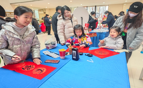一紙紅箋書吉慶,半勺甜飴畫豐年。書法小愛好者們端坐案前,揮毫潑墨、筆力沉穩,一筆一畫認真書寫春聯與福字,稚嫩的筆法間透著扎實功底,吉祥語句飽含對新年的美好期盼。紅紙黑字相映成趣,墨香四溢,中華優秀傳統文化在童心執筆間代代相傳。一旁的糖畫攤位前,糖畫師傅以勺為筆、以糖為墨,行云流水間勾勒出靈動駿馬、吉祥福字等馬年主題圖案,既貼合生肖年味,又盡顯非遺民俗的獨特魅力,讓沉浸式體驗更具質感,讓大家在觀賞與品嘗中讀懂傳統民俗的內涵。