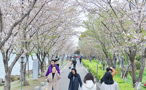 區(qū)內企事業(yè)單位職工和周邊市民齊聚在獨墅湖櫻花大道,共同解鎖這場櫻花下的奇趣之旅。