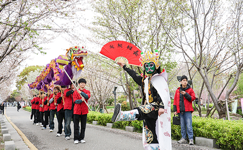 活動由沿湖動線串聯,設置快閃表演、趣味巡游與集章有禮等環(huán)節(jié)。舞龍舞獅、變臉、國風漢服特色巡游貫穿活動現場,“櫻樂充電站”“櫻花能量場”快閃區(qū)用音樂和舞蹈盡顯青春活力風貌。