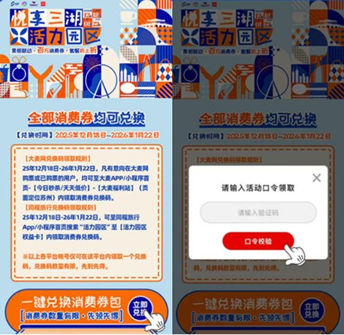 在“票根經濟主題月”期間,園區(qū)聯(lián)動比斯特蘇州購物村、久光百貨、新光天地等商業(yè)載體,在大麥、同程旅行等平臺上線不同品類消費券,覆蓋餐飲、零售、住宿等多元業(yè)態(tài),把“演出流量”轉化為實實在在的“消費留量”。