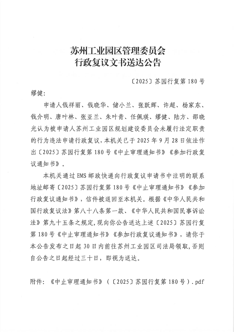 行政復議文書送達公告