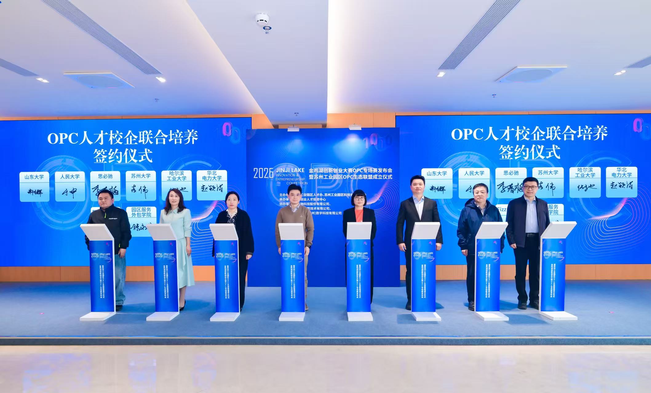 現場,思必馳與蘇州大學、人民大學、哈爾濱工業大學、山東大學、華北電力大學,FizzDragon與蘇州工業園區服務外包學院分別簽約開展OPC人才校企聯合培養,構建多方協同育人機制,邁出“人才+產業+創新”一體化發展的關鍵一步。