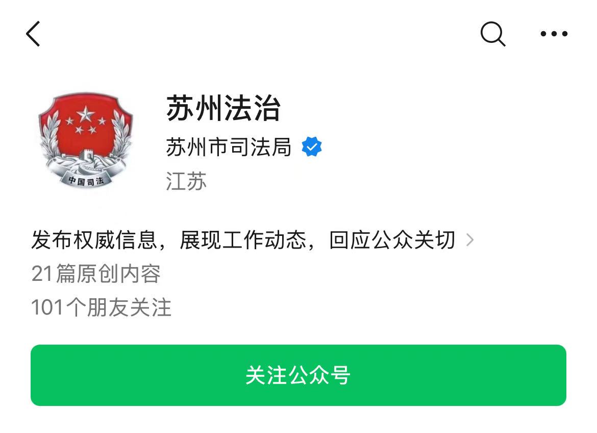 第一步:微信搜索、關(guān)注“蘇州法治”公眾號(hào)