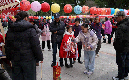 At Weiting Park, professional Wuxi opera performances were staged alongside a market incorporating riddle guessing and handy services, attracting many residents from nearby communities.