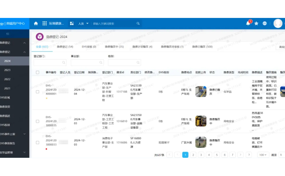 自2021年起,為便于全體員工反饋安全隱患,星諾奇上線隱患登記系統,員工在線上可以直接上報隱患。同時,還能通過系統在線學習常見隱患圖示、查閱EHS部門日常安全檢查臺賬及自己報送隱患的后續閉環情況。4年間,隱患登記系統持續更新優化,期間維護了近100條適用于工廠的標準隱患圖示和隱患描述,極大地提高了員工隱患提報精準度,使得企業風險管控水平大大提升。