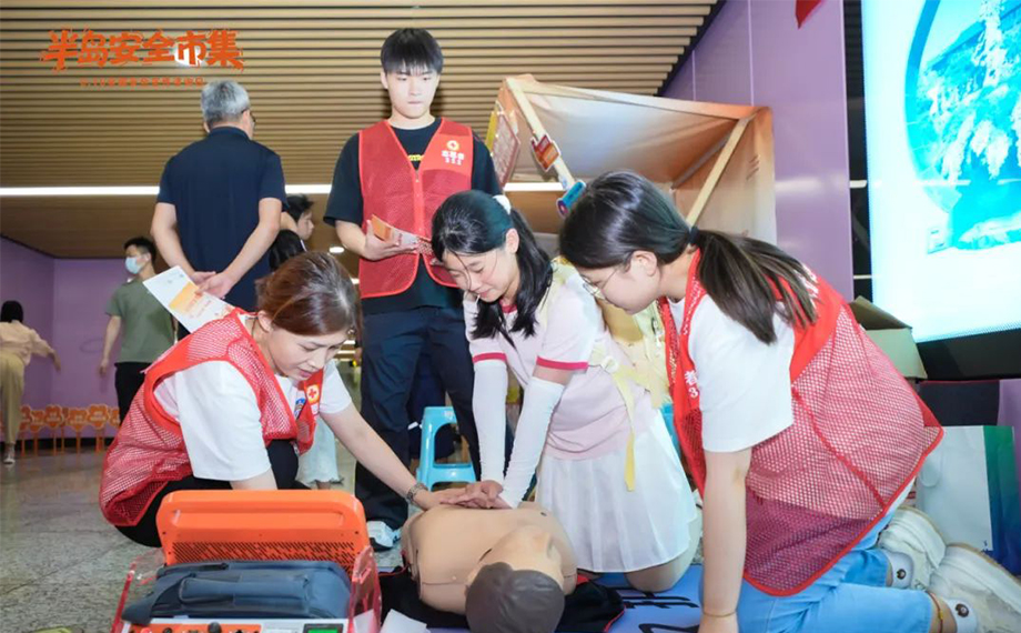 市集現場不僅發放了安全手冊,還設置了“電磁迷宮”,需要體驗人舉起鐵環無觸碰完成穿越,否則將感受到“觸電”體驗,引導大家注意用電安全;現場講解的海姆立克急救法實操、心肺復蘇術的操作步驟及方法吸引了現場市民一起參與體驗,讓更多人掌握了急救方法;被總結為“圍、系、拉、抽”簡要口訣的逃生繩“救命繩結”使用教學,帶領大小朋友們一起學習打逃生結。